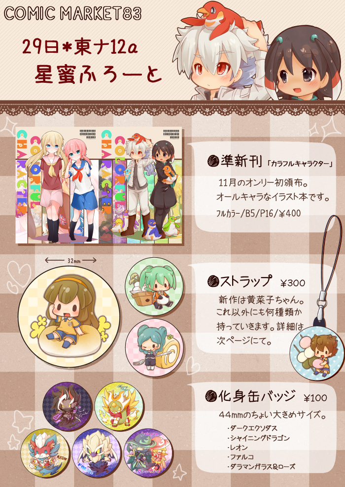 今のところ、イラスト本とストラップ(残ってたら)を予定しています。