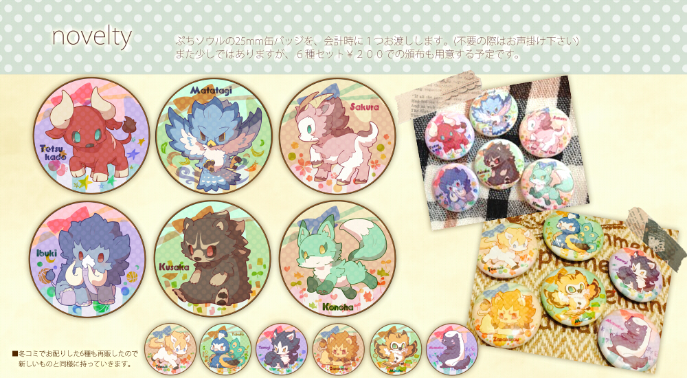 6個セット¥200での頒布も用意してますので、全種欲しい!という方はセットの方をご検討下さい~